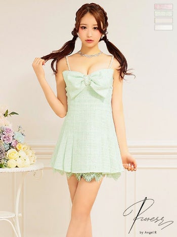 4. 【PURESS/ピュアレス】セクシー ビックリボンデザイン ツイード パールキャミソール マイクロ フレアミニドレス (PS802408)