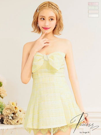 4. 【PURESS/ピュアレス】ガーリー ビックリボンデザイン ツイード パールキャミソール マイクロ フレアミニドレス (PS802408)