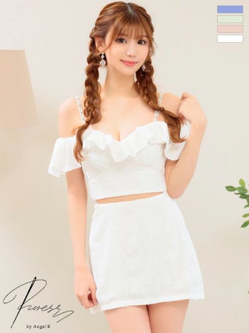 XSあり!さわやかCUTEな印象☆ SALE【PURESS/ピュアレス】バックリボン セットアップ オフショルダー フリル パールショルダー フレアミニドレス(PS802413)