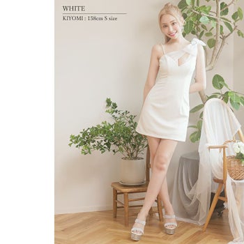 4. SALE【PURESS/ピュアレス】ビジュー リボン ショルダー アシンメトリー キャミソール パール チェーン フレアミニドレス (ps802416)