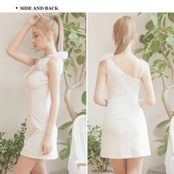 XSあり!SEXYなバスト魅せが叶う♡ SALE【PURESS/ピュアレス】アシンメトリー パール チェーン キャミソール ビジュー フェミニン リボン ショルダー フレアミニドレス (ps802416)
