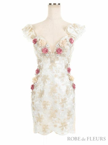 素材 サテン、ラメ刺繍レース、チュール、立体フラワーモチーフ