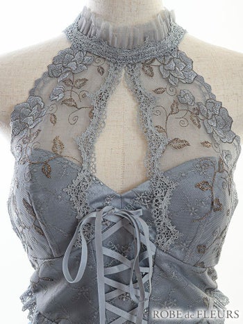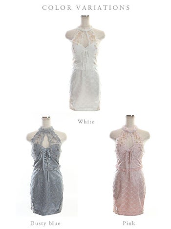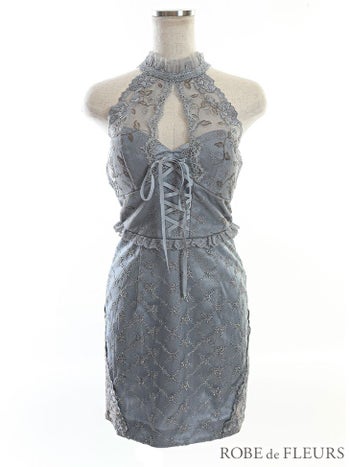 3. 【ROBEdeFLEURS/ローブドフルール】ゴージャス レースアップチュール ホルターネック タイトミニドレス(FM2519)