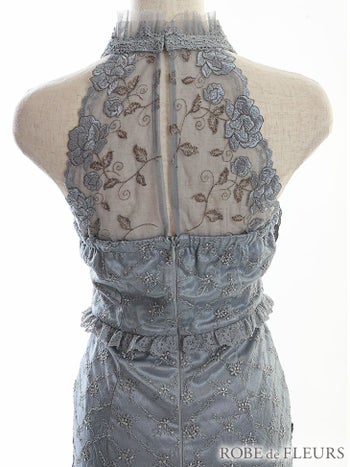 4. 【ROBEdeFLEURS/ローブドフルール】ゴージャス レースアップチュール ホルターネック タイトミニドレス(FM2519)