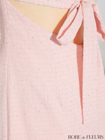 4. 【ROBEdeFLEURS/ローブドフルール】ワッフル ビジュー 半袖 リボン カットデザイン タイトミニドレス (fm3294)