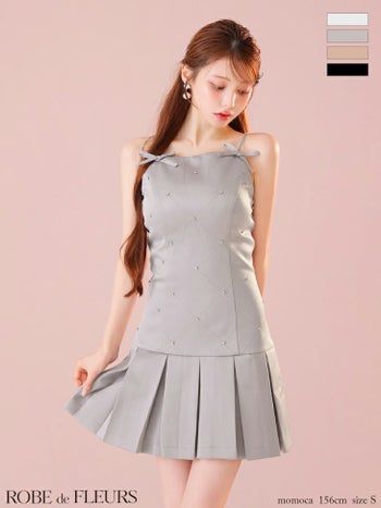 キャバドレス ROBEdeFLEURS ローブドフルール ビジュー キャミソール リボン ボックスプリーツ ガーリー フレアミニドレス