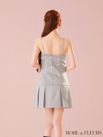 4. 予約商品【2月中旬入荷予定】【ROBEdeFLEURS/ローブドフルール】ビジュー キャミソール リボン ボックスプリーツ ガーリー フレアミニドレス (fm3399)