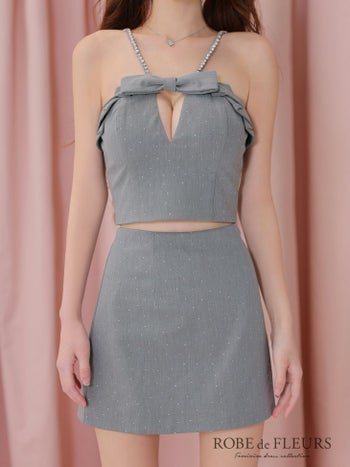 4. 【ROBEdeFLEURS/ローブドフルール】キャミソール セットアップ バストリボン ガーリー ストーン タイトミニドレス(fm3453)