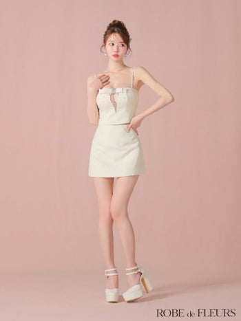 3. 【ROBEdeFLEURS/ローブドフルール】バストリボン キャミソール ビジュー セットアップ ガーリー タイトミニドレス(fm3456)