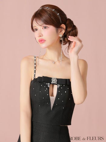 3. 【ROBEdeFLEURS/ローブドフルール】セットアップ バストリボン キャミソール ビジュー ガーリー タイトミニドレス(fm3456)