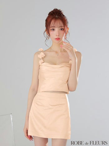 キャバドレス ROBEdeFLEURS ローブドフルール サテン フラワーストラップ キャミソール セットアップ タイトミニドレス