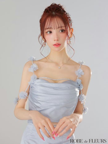 3. 【ROBEdeFLEURS/ローブドフルール】サテン フラワーストラップ キャミソール セットアップ タイトミニドレス (fm3461)