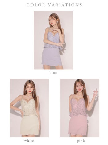 バスト約87cm ウエスト約54~62cm ヒップ約86cm 着丈(トップス)26.5cm(スカート)約39cm