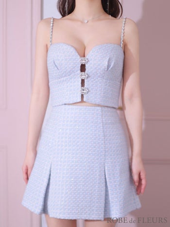 キャバドレス ブランド ビジュー ツイード ガーリー キャミソール セットアップ フレアミニドレス