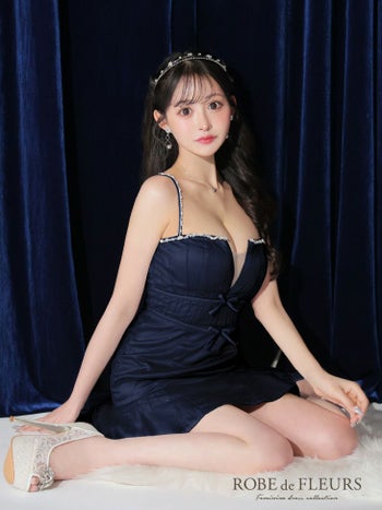 XSあり!肩紐取り外し可能♪ 【ROBEdeFLEURS/ローブドフルール】オープンバスト キャミソール ラメチュール サテン ウエストリボン ビジュー ガーリー フレアミニドレス (fm3582)