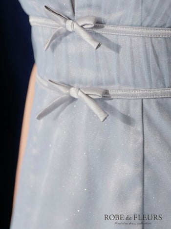 4. 【ROBEdeFLEURS/ローブドフルール】オープンバスト キャミソール ラメチュール サテン ウエストリボン ビジュー ガーリー フレアミニドレス (fm3582)
