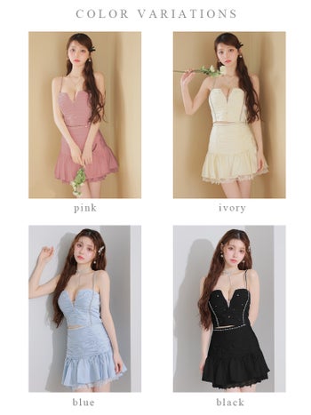 キャバドレス ROBEdeFLEURS ローブドフルール セットアップ キャミソール ビジュー レース サテン フリル フレアミニドレス