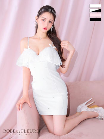 XSあり!バストフリルで谷間爆盛れ♡ 【ROBEdeFLEURS/ローブドフルール】バストフリル サマーツイード キラキラ ビジュー ラブリー ミニリボン キャミソール タイトミニドレス(fm3709)
