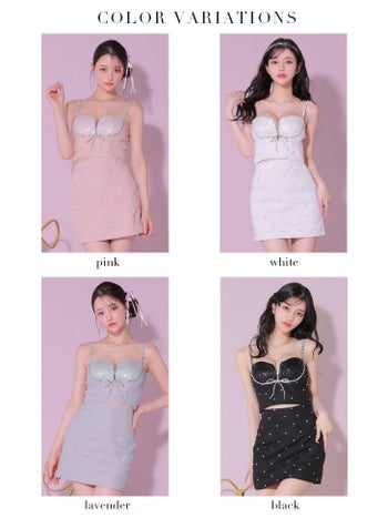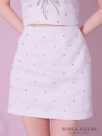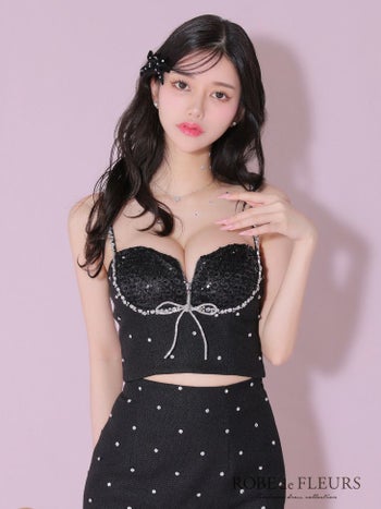 キャバドレス ROBEdeFLEURS ローブドフルール セットアップ キャミソール ジップデザイン ビジューライン サマーツイード フロントリボン ビーズ付き スパンコール チュール フレアミニドレス