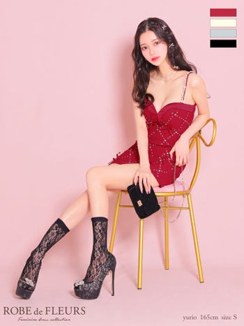キャバドレス ROBEdeFLEURS サテンリボン オープンバスト キャミソール セットアップ ガーリー ビジュー ツイード タイトミニドレス