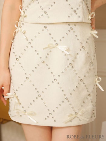 3. 【ROBEdeFLEURS/ローブドフルール】サテンリボン オープンバスト キャミソール セットアップ ガーリー ビジュー ツイード タイトミニドレス (fm3741)