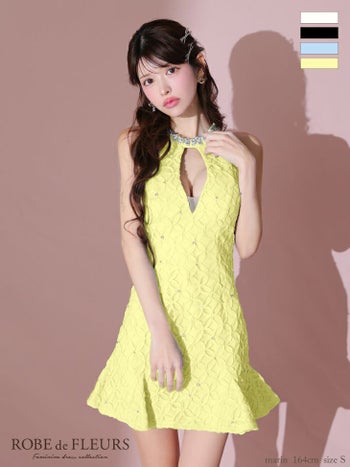 XSあり!ビジューがキラキラ輝く♪ 【ROBEdeFLEURS/ローブドフルール】バストカット ビジュー ホルターネック フラワー ガーリー フレアミニドレス (fm3797)