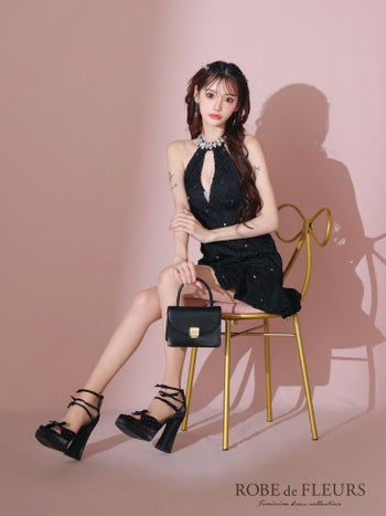 3. 【ROBEdeFLEURS/ローブドフルール】バストカット ビジュー ホルターネック フラワー ガーリー フレアミニドレス (fm3797)