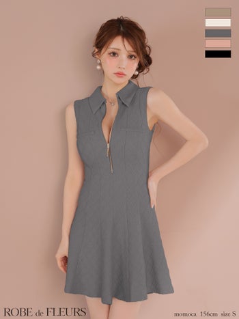 4. 予約商品【2月中旬入荷予定】【ROBEdeFLEURS/ローブドフルール】襟付き ノースリーブ ジップデザイン シンプル ラメ フレアミニドレス (fm4212)