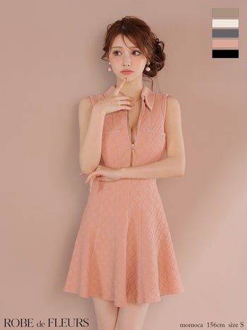キャバドレス ROBEdeFLEURS ローブドフルール 襟付き ノースリーブ ジップデザイン シンプル ラメ フレアミニドレス