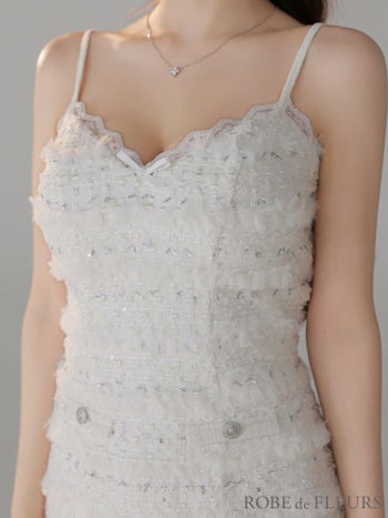 素材 フェザースパンコール混ツイード、レース、サテンリボン