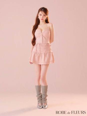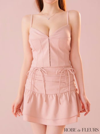 キャバドレス ROBEdeFLEURS ローブドフルール オープンバスト フロントボタン サイドリボン セットアップ ガーリー キャミソール フレアミニドレス