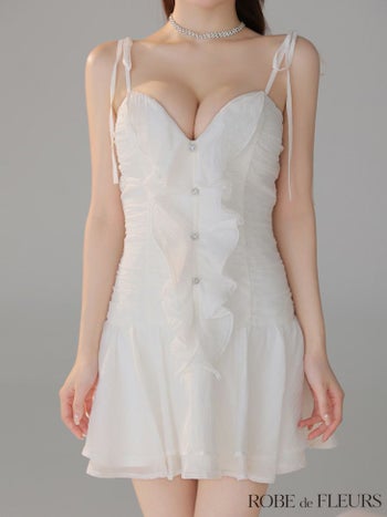 キャバドレス ROBEdeFLEURS ローブドフルール サテン シフォン キャミソール リボン ガーリー Aラインミニドレス