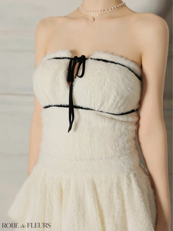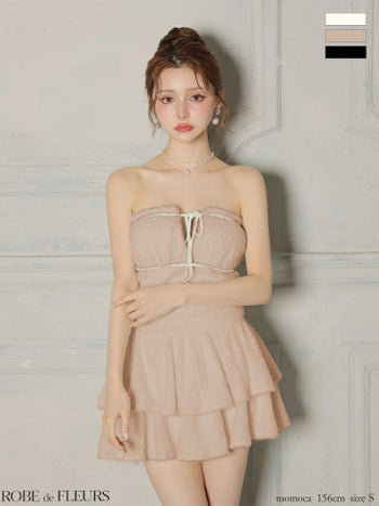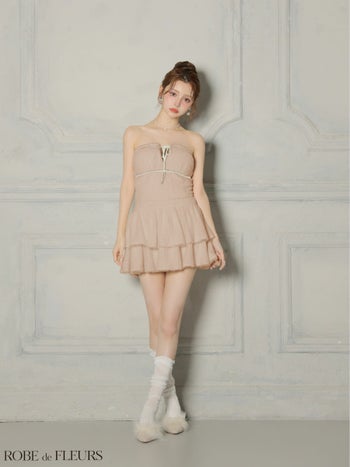 3. 【ROBEdeFLEURS/ローブドフルール】フリル ティアードスカート ベアトップ ジャギーニット セットアップ リボン ガーリー フレアミニドレス (fm4600)