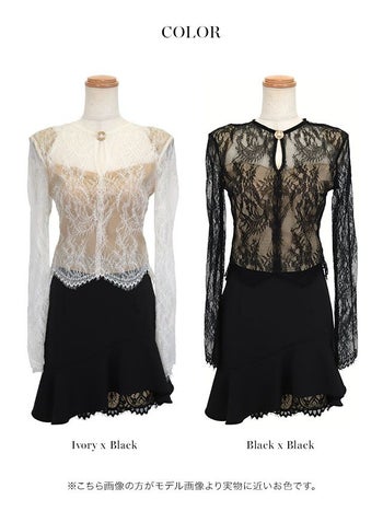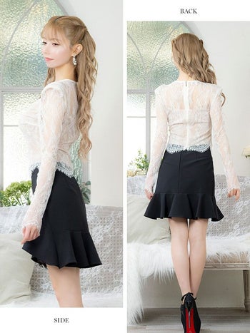 3. SALE【Anella/アネラ】セットアップ レース 長袖 パールボタン バストカット フリル フレアミニドレス