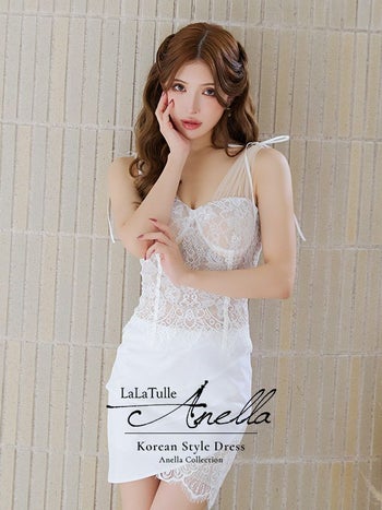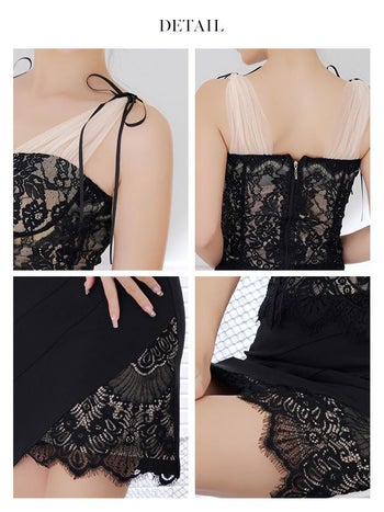 キャバドレス Anella アネラ リボンショルダー キャミソール チュール セットアップ レース ラップ風 タイトミニドレス