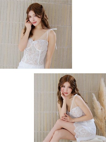 4. SALE【Anella/アネラ】リボンショルダー キャミソール チュール セットアップ レース ラップ風 タイトミニドレス