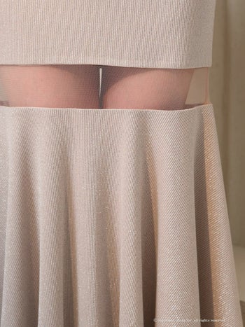 ベアトップ フリル シアー パール マーメイドロングドレスの詳細画像2