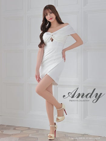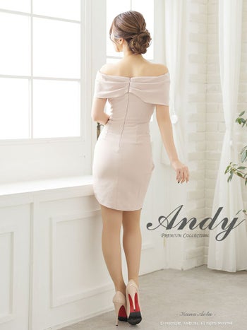 4. 【Andy/アンディ】半袖 クロスデザイン オフショルダー ワンカラー バストカット ラップスカート タック タイトミニドレス(anon2829)
