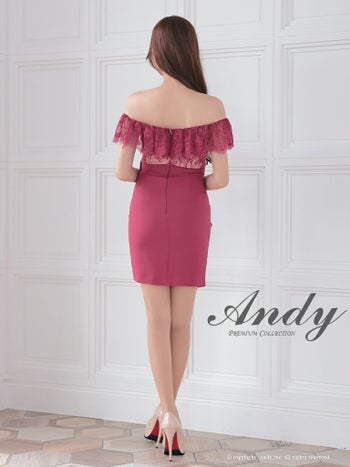 キャバドレス ミニドレス Andy アンディ ワンカラー フリル ベルト リボン レース アシンメトリー オフショルダー タイトミニドレス