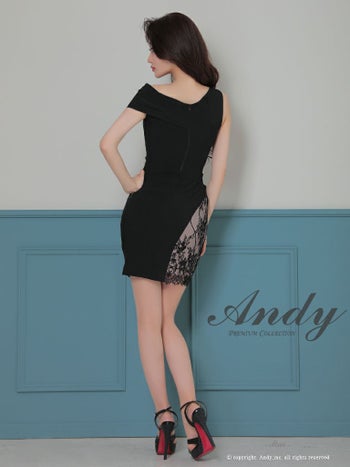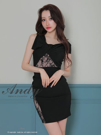 キャバドレス ミニドレス Andy アンディ ワンカラー レース アシンメトリー カットアウト ワンショルダー タイトミニドレス