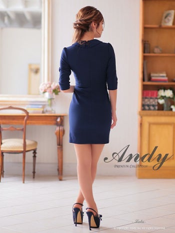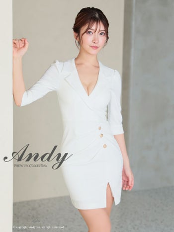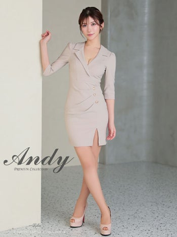 キャバドレス タイトミニドレス Andy アンディ 襟デザイン スリット ワンカラー ボタン 袖あり