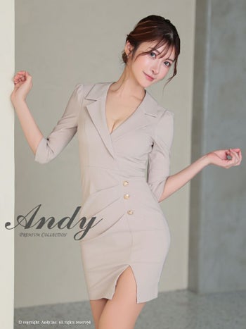 キャバドレス タイトミニドレス Andy アンディ ワンカラー 襟デザイン スリット ボタン 袖あり