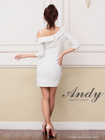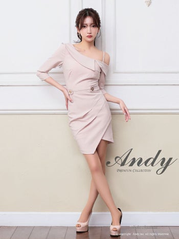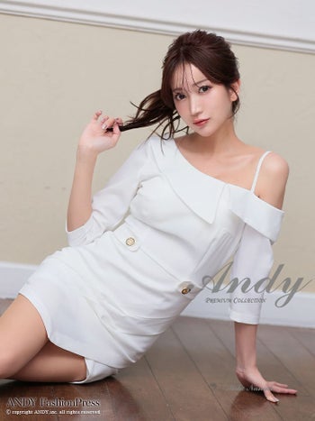 5. 【Andy/アンディ】ワンショルダー 襟 袖あり ワンカラー ウエストベルト ラップスカート タック タイトミニドレス(anon2897)