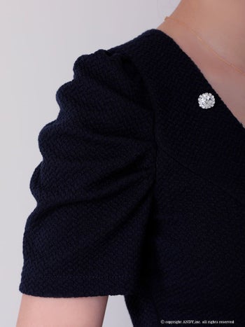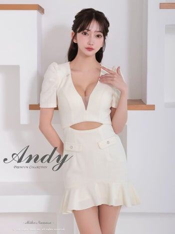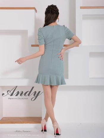 XSあり!清楚な雰囲気漂う♡ 【Andy/アンディ】ウエストカット シースルー 半袖 チェーン パフスリーブ 裾フリル ボタン タイトミニドレス(anon2917)