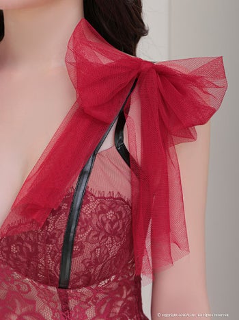 3. 【an/アン】チュール リボン レース ランジェリー風 キャミソール タイトミニドレス(aoc3712)