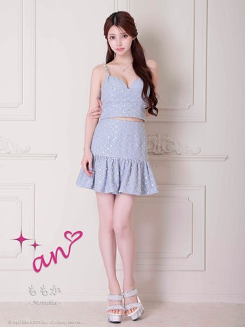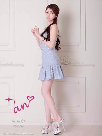 キャバドレス an アン パール スパンコール セットアップ キャミソール フレアミニドレス