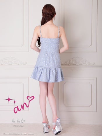 4. 【an/アン】 パール スパンコール セットアップ キャミソール フレアミニドレス(aoc3903)