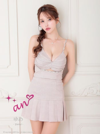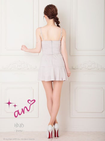 XSあり!チラッと見える素肌がドキッとする♡ 【an/アン】キャミソール Vカット セットアップ ラメ チェーン ビジュー プリーツ カットデザイン フレアミニドレス(aoc3937)