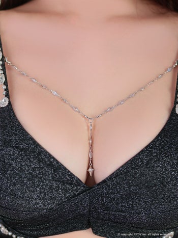3. 【an/アン】キャミソール Vカット セットアップ ラメ チェーン ビジュー プリーツ カットデザイン フレアミニドレス(aoc3937)