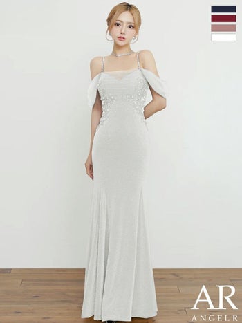 品のある女性らしさを演出♪ 【Angel R/エンジェルアール】2way 肩あき フラワーレース オフショルダー セクシー ビジュー ラメ マーメイドロングドレス (AR25863)